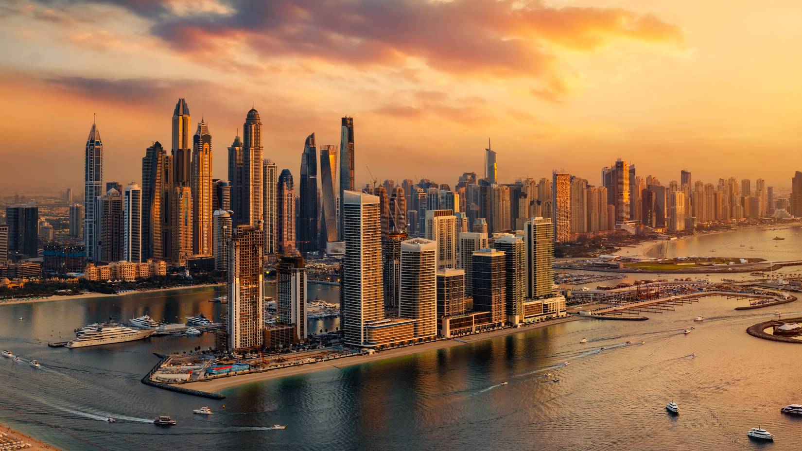 Die größte Stadt der Vereinigten Arabischen Emirate, Dubai, ist bekannt für ihre hochmoderne Technologie und berühmte Wahrzeichen wie den Burj Khalifa, den höchsten Wolkenkratzer der Welt, und die baumförmige Insel Palm Jumeirah, die für ihre noblen Türme, Hotels und gehobenen Restaurants bekannt ist.