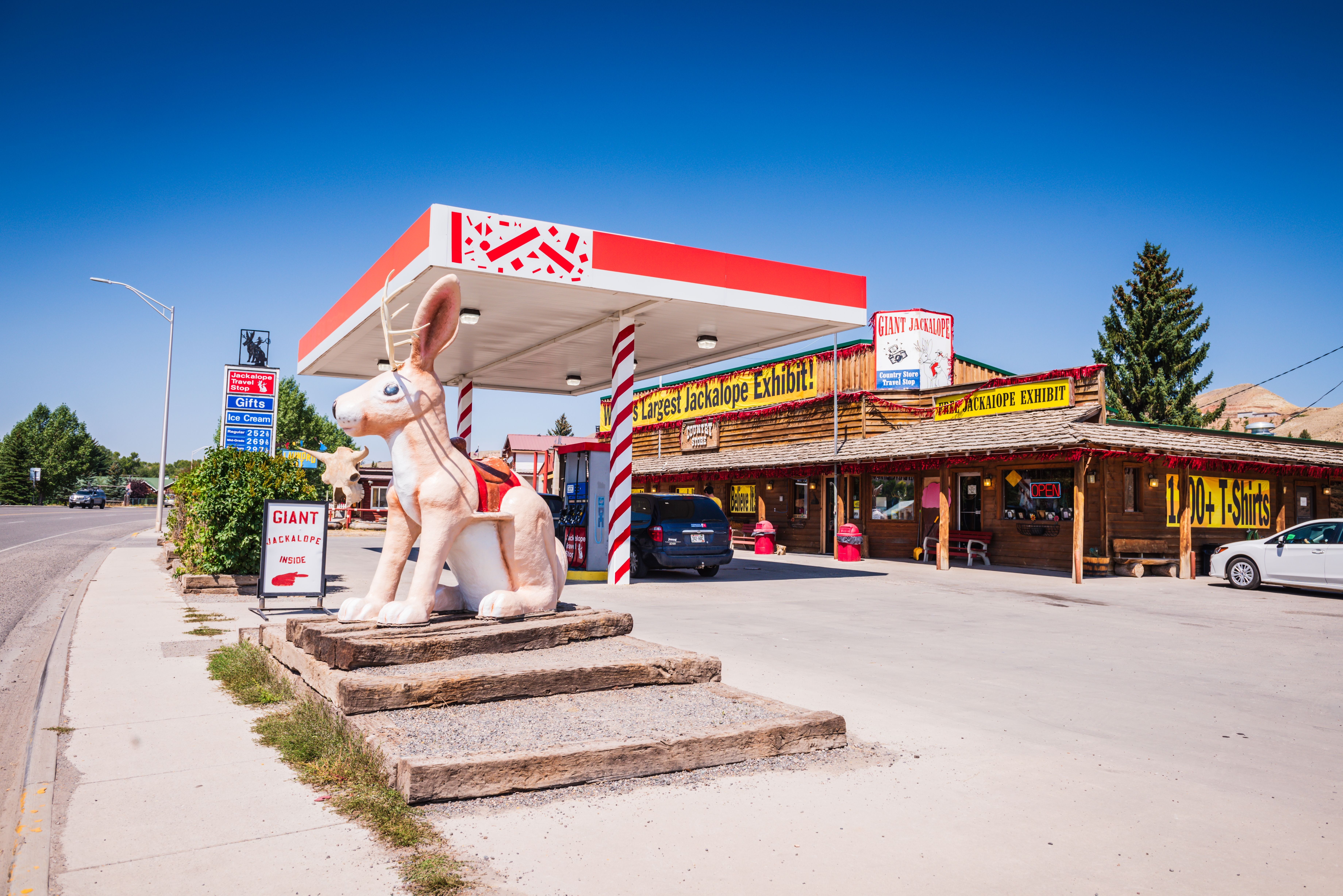 Riesige Jackalope-Statue in Dubois, Wyoming