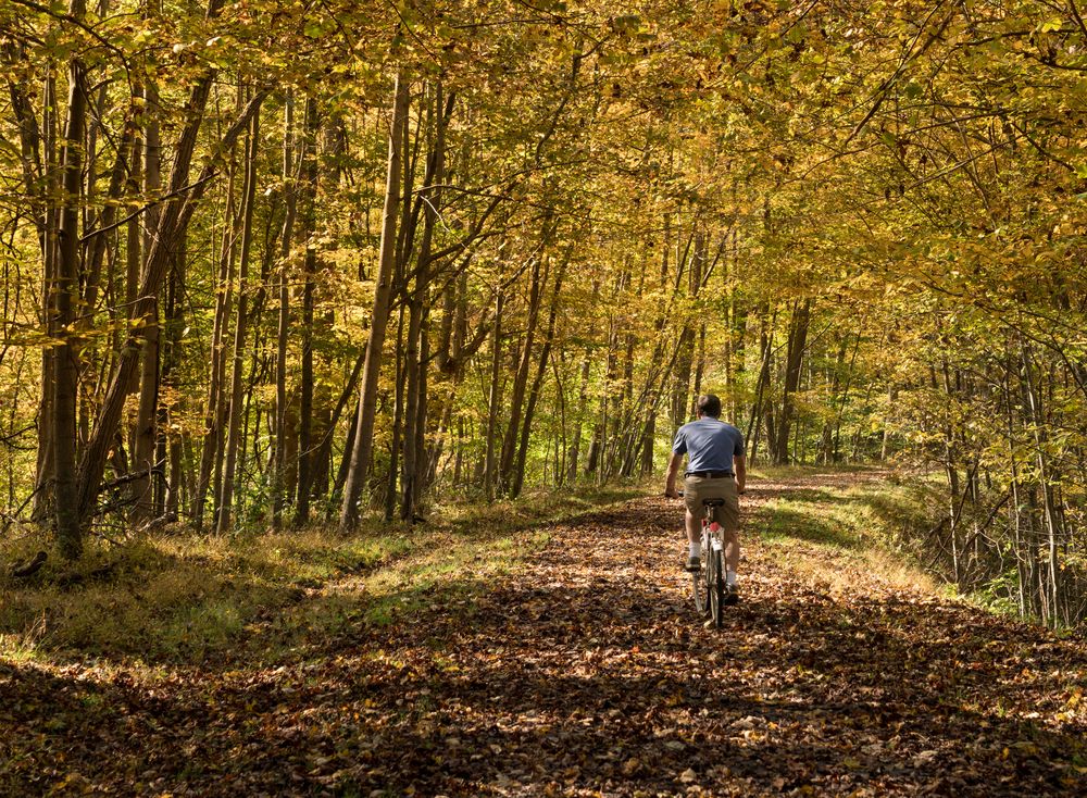 Im ganzen Land werden stillgelegte Eisenbahnstrecken in Wander- und Radwege umgewandelt, und jetzt gibt es in den Vereinigten Staaten viele ausgezeichnete Eisenbahnwege zum Radfahren, und diese charmante Kleinstadt ist da keine Ausnahme.