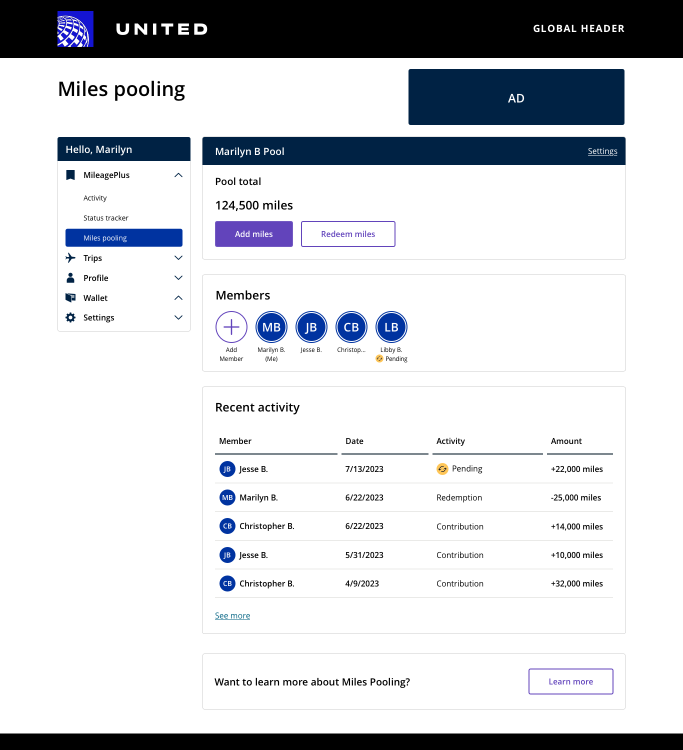 „Wir sind immer auf der Suche nach neuen Wegen, um allen unseren Treuemitgliedern den größtmöglichen Mehrwert zu bieten, und sind stolz darauf, die erste große US-Fluggesellschaft zu sein, die es unseren Mitgliedern ermöglicht, ihre Meilen mit ihren Lieben und Freunden zu bündeln. Durch die Bündelung von MileagePlus-Meilen wird Uniteds Position als Marktführer im Bereich Familien- und Gruppenreisen weiter gestärkt und unseren Mitgliedern mehr Flexibilität bei der Nutzung ihrer Meilen gegeben, während gleichzeitig die Verbindung zu den Zielen und Momenten, die am wichtigsten sind, mit den Menschen, die am wichtigsten sind, erleichtert wird.“ – Luc Bondar, Chief Operating Officer von MileagePlus