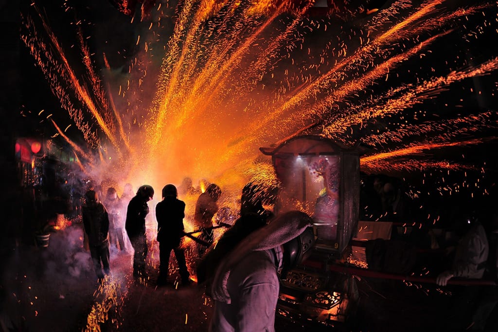 Während im Norden die Himmelslaternen schweben, zündet im Süden das Bienenstockfeuerwerk. Der Legende nach gilt das Fest als eines der größten Volksfeste der Welt und begann als Teil eines Gebets zu Guan Di, dem Kriegsgott. Scharen zündeten Feuerwerkskörper und folgten ihm bis zum Morgengrauen durch die Straßen. Zukünftige Generationen führten diese Tradition mit Freude weiter und zu diesem Anlass bilden Sänften mit heiligen Figuren einen Rundgang durch die Stadt. Entlang der Strecke werden Zylinder mit Flaschenraketen gefüllt, und sobald die Zündschnur angezündet ist und das Geräusch wütender Bienen zu hören ist, explodieren Hunderttausende Feuerwerkskörper in alle Richtungen. Gerüchten zufolge wird die große Zahl an Feuerwerkskörpern im neuen Jahr Probleme beseitigen und Glück bringen.