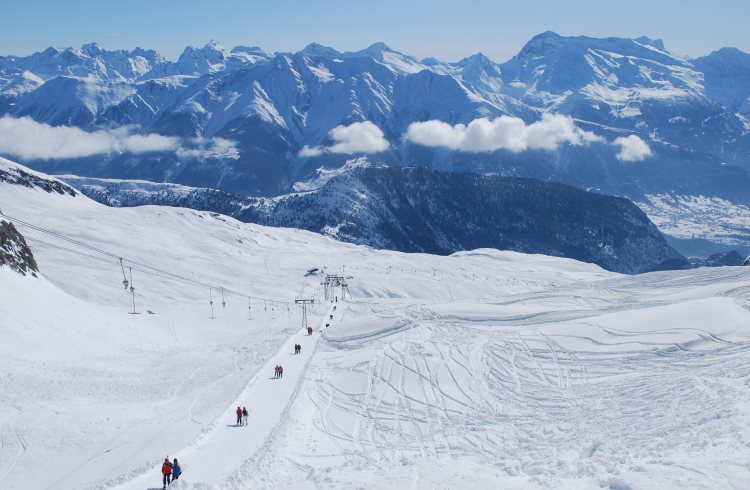 Das Skifahren hier ist spektakulär, mit Panoramen der 13.100 Fuß (4.000 m) hohen Berge der Schweiz, einschließlich des Matterhorns. Sie können weite Hänge hinabfliegen und auf Skiern durch Dörfer düsen, eine Pause für Fondue und Kaffee einlegen, bevor Sie wieder einsteigen und Ihren Lauf beenden. Vom Gipfel des 2.927 m hohen Eggishorns über das Dorf Fiescheralp können Sie ein kurzes Stück wandern und unvergessliche Ausblicke auf den Aletschgletscher genießen.