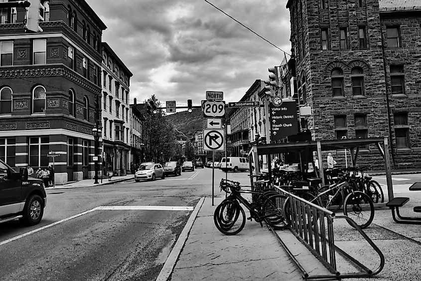 Stellen Sie sich zuerst den Ton vor. Ein Zughorn trieb die Schlucht hinauf, prallte von den Hängen ab und verschwand dann im darunter liegenden Lehigh River. Es stimmt auf den Broadway ein, wo hohe Backsteingebäude mit verzierten Gesimsen wie Requisiten aus einem viktorianischen Filmset aufragen. Die Hänge steigen schnell an. Die Dramatik ist direkt in das Gelände integriert, und der Kaffeeduft, der aus den Eckcafés weht, verleiht der Straße ein historisches und lebendiges Gefühl.