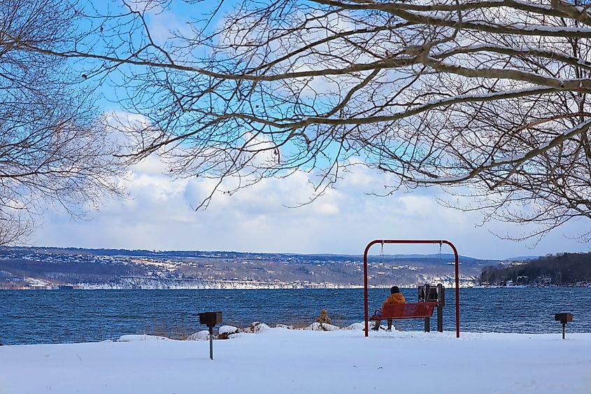 Etwas südlich von Cayuga Lake in der Region Finger Lakes liegt Ithaca, eine charmante Stadt inmitten der Natur und Heimat des Ithaca College und der Cornell University. Im Winter können Besucher der berühmten Universitätsstadt wandern und die gefrorenen Wasserfälle, sei es der Taughannock Falls State Park, die Ithaca Falls oder die Buttermilk Falls, bewundern und ihre natürliche Beeindruckung bewundern. Besucher und Anwohner können auch auf der Eisbahn Cass Park Eislaufen gehen, wo vom 15. Oktober bis 15. März öffentliche Eislaufstunden stattfinden.