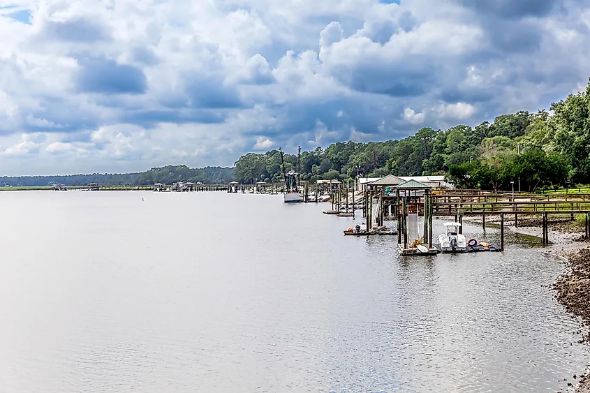Ein Blick auf die Küste von Bluffton, South Carolina, bei Tag.