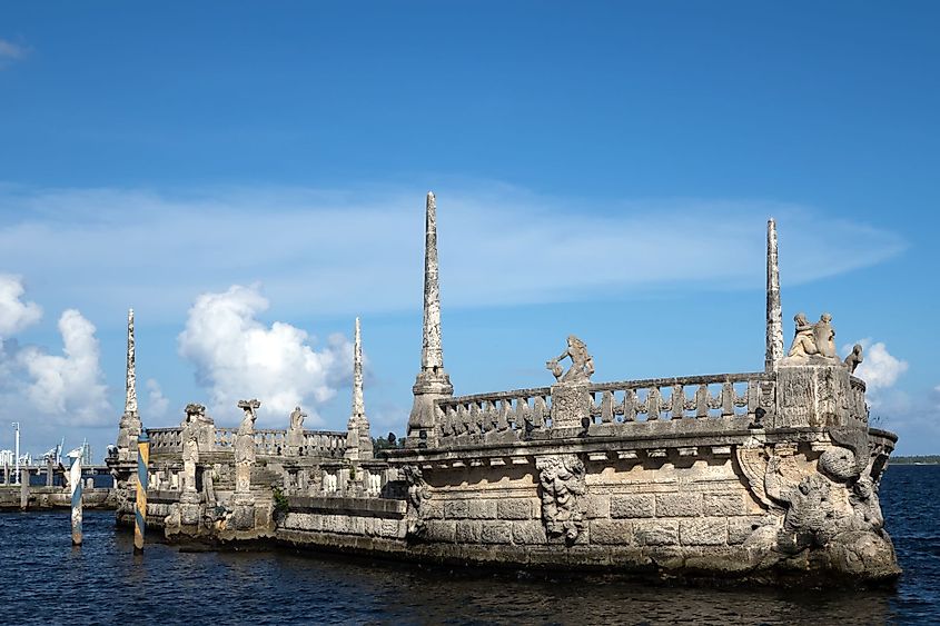 Ein steinerner Wellenbrecherkahn im Vizcaya Museum & Gardens. Shutterstock.com