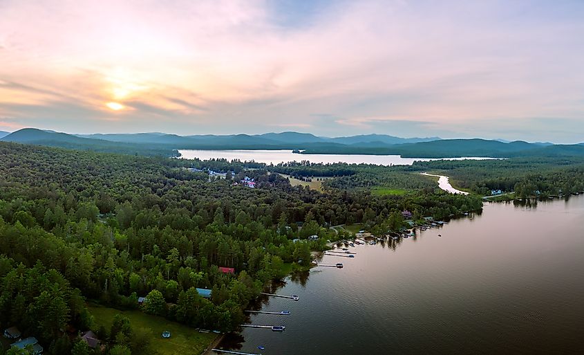 Luftaufnahme des Spekulants, New York, mit Lake Pleasant im Vordergrund.