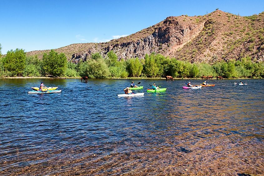 Der Salt River, östlich von Phoenix im Tonto National Forest gelegen, ist eines der beliebtesten Ziele für Wildwasser-Rafting in Arizona. Das Abenteuer ist saisonabhängig, wobei die Stromschnellen ihren Höhepunkt von Februar bis Mai erreichen, wenn die Schneeschmelze der White Mountains den Fluss speist. Dadurch entsteht eine aufregende Auswahl an Stromschnellen der Klasse III und IV, perfekt für Adrenalinjunkies und erfahrene Rafting-Fahrer, die eine Herausforderung suchen.