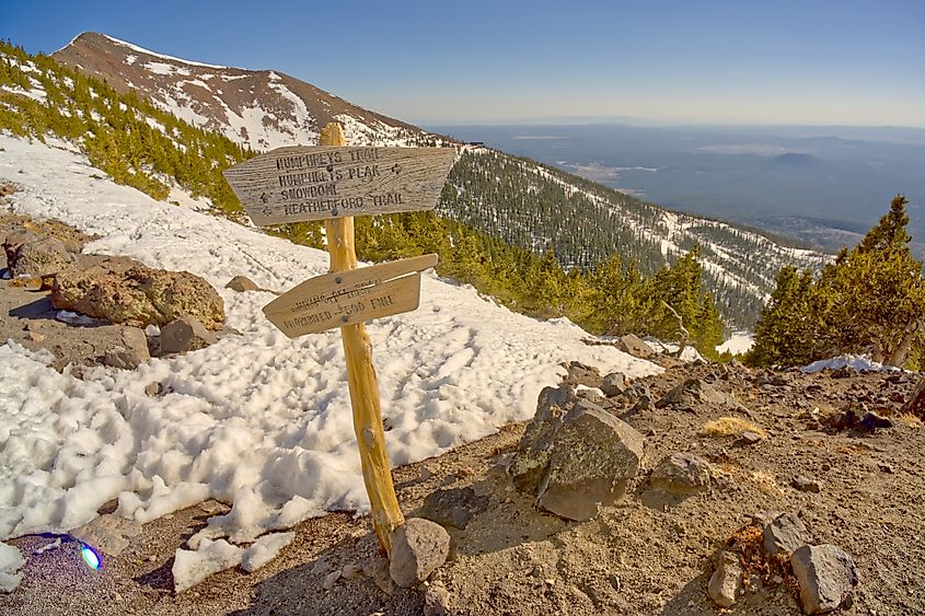 Wegweiser zum Humphrey’s Peak, Arizona.