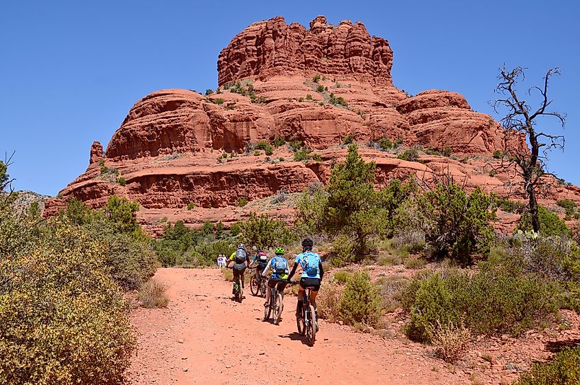 Mountainbiken durch die rote Felslandschaft von Sedona ist eine aufregende Möglichkeit, ihre raue Schönheit zu erkunden. Das Gebiet bietet Trails für alle Schwierigkeitsgrade, von Anfängerpfaden auf dem Bell Rock Pathway bis hin zu anspruchsvolleren Routen wie dem Hiline Trail für erfahrene Fahrer. Die roten Felsformationen, riesigen Schluchten und die Wüstenflora schaffen eine atemberaubende Umgebung, während verschiedene Rundwege Flexibilität bieten, um Sedonas natürliche Schönheit in jedem Tempo zu erkunden.
