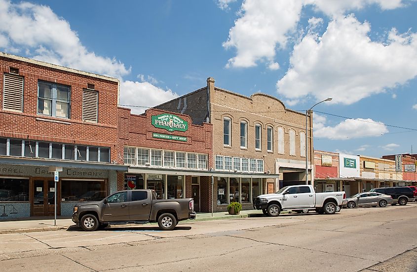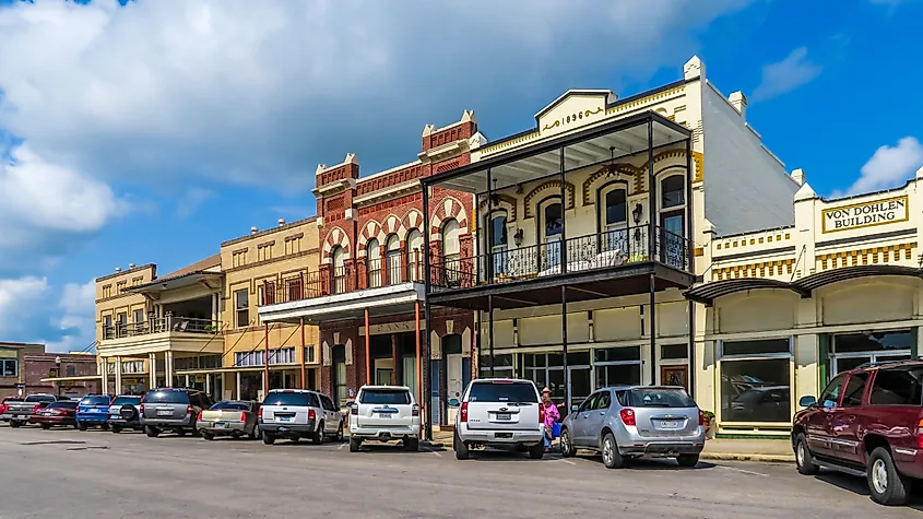 Typische texanische Gebäude auf dem Stadtplatz in Goliad, Texas. Bildnachweis: Philip Arno Photography / Shutterstock.com
