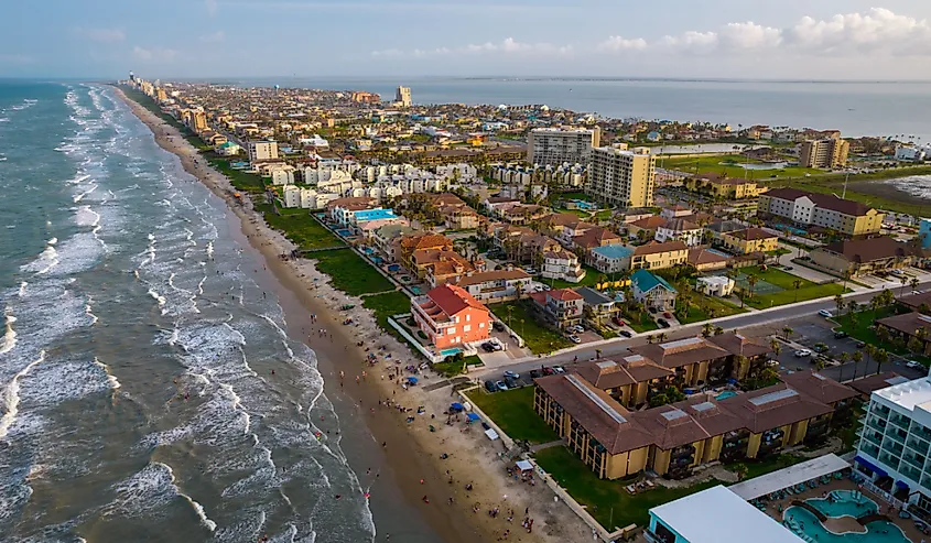 Luftdrohnenaufnahme des South Padre Island Beach in Südtexas