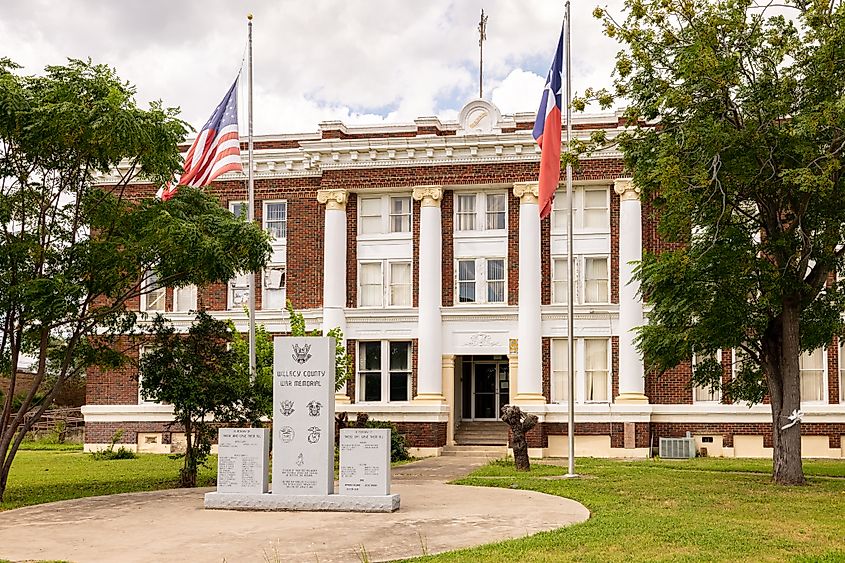 Raymondville, Texas: Das Gerichtsgebäude von Willacy County und das Kriegsdenkmal, über Roberto Galan / Shutterstock.com