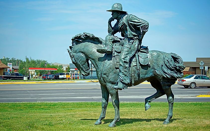 Cowboy-Statue in Lander, Wyoming. Bildnachweis Fsendek über Shutterstock.