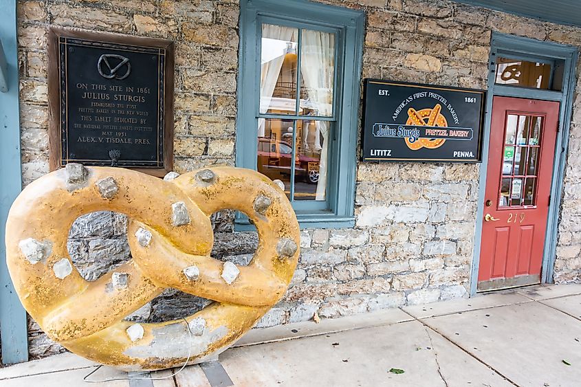 Sturgis Pretzel House an der Main Street in Lititz, Pennsylvania. Bildnachweis Alizada Studios über stock.adobe.com