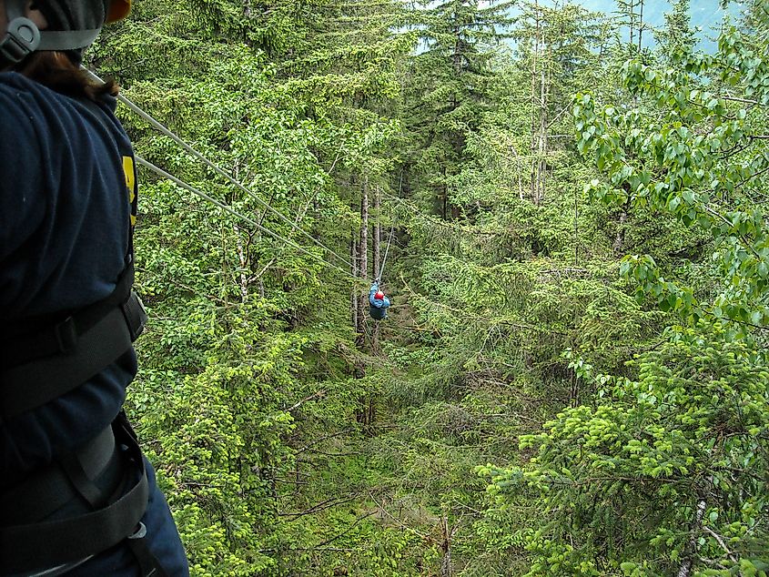 Das Finden der richtigen Zipline-Tour kann über Erfolg oder Misserfolg Ihres Erlebnisses entscheiden. Aber keine Sorge. Wir haben die Recherche für Sie durchgeführt. Kawanti Adventures bietet ein unvergessliches Erlebnis mit seinen Canopy-Zipline-Touren auf Douglas Island in der Nähe von Juneau. Hoch im Regenwald gelegen, verfügt ihr Kurs über mehrere Seilrutschen und eine Hängebrücke, die alle einen herrlichen Panoramablick auf die umliegende Wildnis bieten. Eine weitere phänomenale Option ist die Denali Park Zipline. Machen Sie eine fünf Kilometer lange ATV-Fahrt hinauf zu ihrem epischen Hochseilgarten und fliegen Sie auf sieben aufregenden Seilrutschen, die durch mehrere Himmelsbrücken verbunden sind, durch die höchsten Bäume. Während Sie durch das Blätterdach rasen, genießen Sie die Schönheit des nahegelegenen Denali-Nationalparks. Höhenangst? Das ist in Ordnung! Sie können sicher sein, dass die oben genannten Abenteuerunternehmen sachkundige und geduldige Führer anbieten, die für Sicherheit sorgen und Ihnen helfen, Ihre Ängste zu überwinden und das bestmögliche Erlebnis zu erzielen.