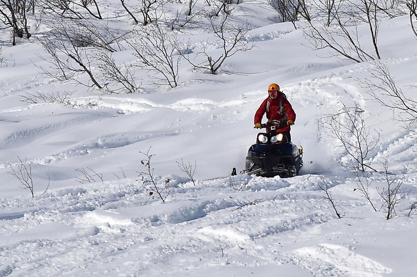 Ein Schneemobilfahrer im Hatcher Pass, Alaska. Bildnachweis: JT Fisherman / Shutterstock.com