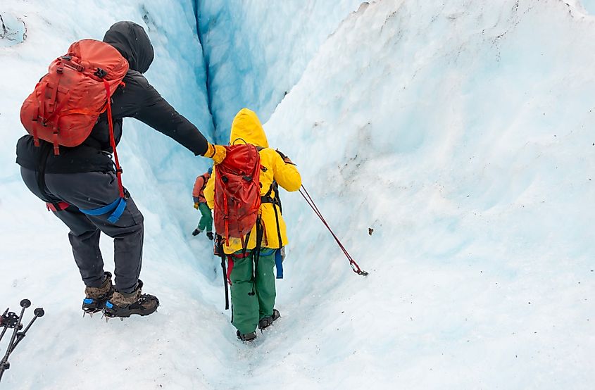 Besucher aller Erfahrungsstufen können Gletscherwanderungen am Exit Glacier in Alaska unternehmen.