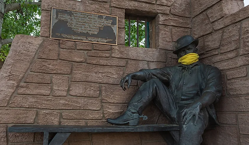 Eine Statue zum Gedenken an Sundance Kid in Sundance, Wyoming. Bildnachweis Logan Bush über Shutterstock