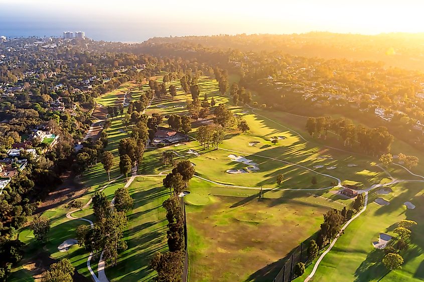 Luftaufnahme eines Golfplatzes in Los Angeles, Kalifornien.