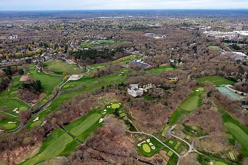Aerial View mit einem Fokus auf den Country Club, den ältesten Country Club in den USA, Brookline, Massachusetts, von Carol M. Highsmith, 2019, aus der Library of Congress. Foto über Wikimediacommons