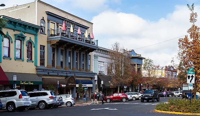 Innenstadt von Ashland, Oregon. Bildnachweis Nature’s Charm über Shutterstock