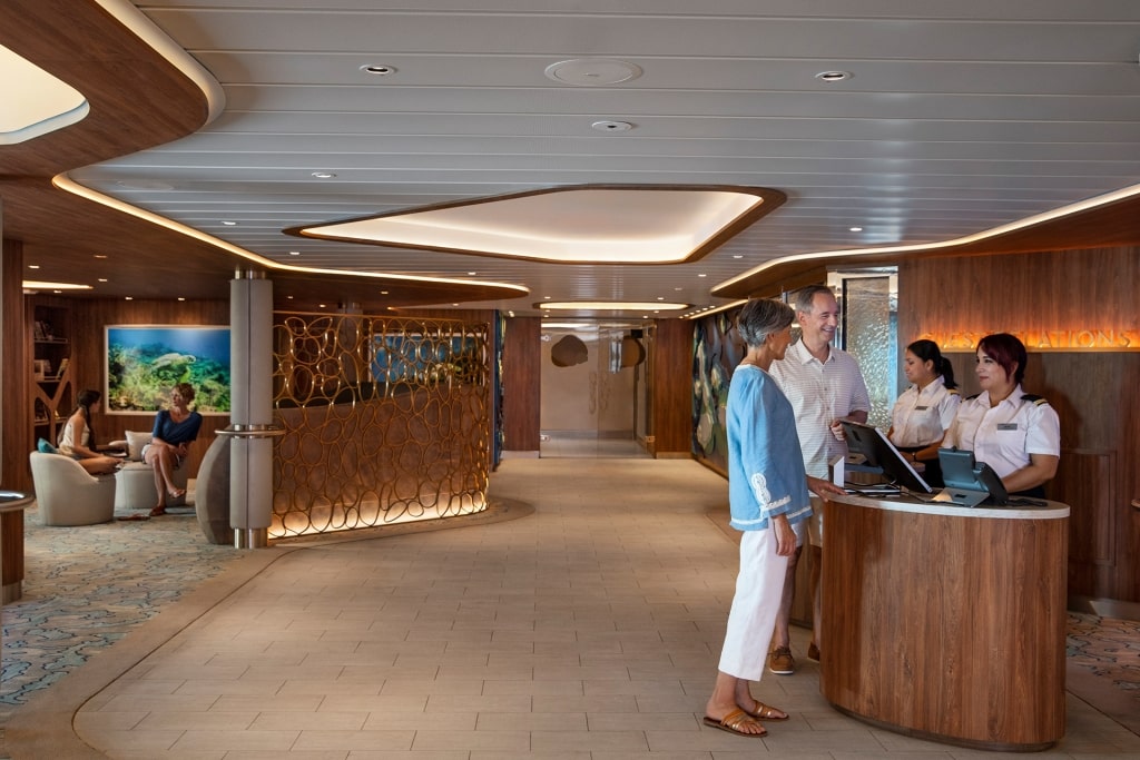 Einer der Zielexperten des Schiffes erklärt Ihnen, welche Lebensmittel, Aktivitäten, Souvenirs und Erlebnisse Sie auf keinen Fall verpassen sollten, und verrät Ihnen auch etwas über die Geschichte, Geografie und das erwartete Wetter des Ziels. Wenn Sie notieren, welche Interessen Sie haben und welche Tipps Sie aus dem Gespräch erhalten, können Sie leichter entscheiden, welche Ausflüge Sie buchen möchten. Gleichzeitig erhalten Sie Hinweise darauf, wie Sie Ihren Tag strukturieren können, um die Zeit an den einzelnen Reisezielen optimal zu nutzen.