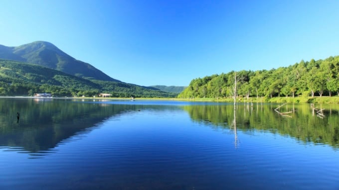 Wenn Sie vor dem „Mishakaike Pond“ stehen, werden Sie von der wunderschönen Landschaft so fasziniert sein, dass Sie vielleicht vergessen zu sprechen. Es ist ein absolutes Muss für jeden Besucher von Tateshina.