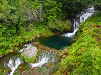 Der Wasserfall „Taruhime no taki“ befindet sich in Yanagawa, etwa 15 Autominuten von Chino in Richtung Tateshina entfernt. Der Wasserfall ist eine zweistufige Kaskade, die auf der ersten Ebene etwa 9 Meter und dann in einem anderen Winkel weitere 3 Meter abfällt. Anstatt majestätisch zu sein, hat der Wasserfall einen weiblichen Charme, der seinem Namen „Taruhime“ gerecht wird. Der Weg zum Wasserfall führt über eine etwas aufregende Hängebrücke und Sie können den Wasserfall auch direkt von oben betrachten.