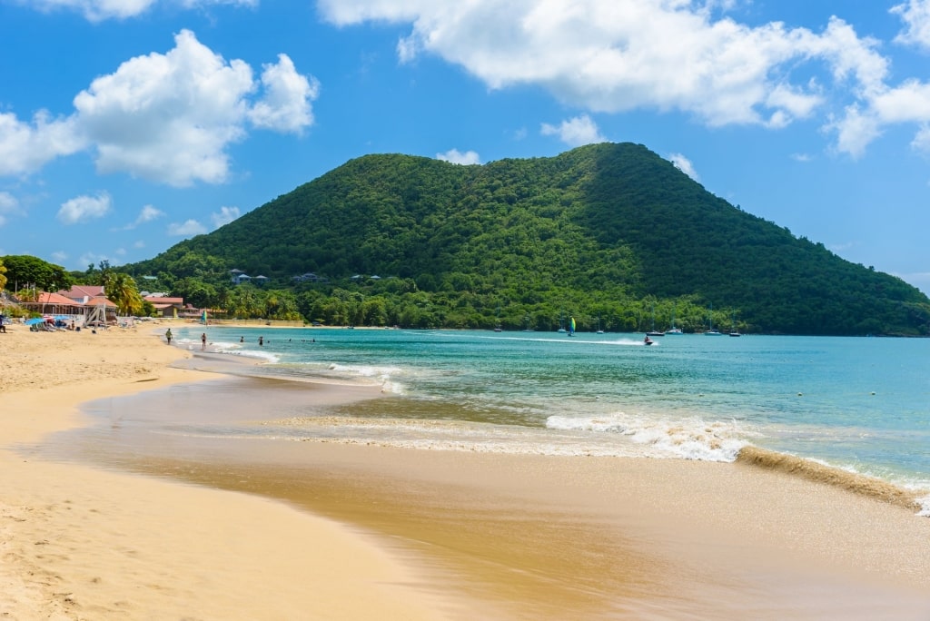 Da alle Strände von St. Lucia für die Öffentlichkeit zugänglich sind, sollten Sie sich zu Anse Chastanet begeben, einem Sandstreifen direkt unterhalb eines gleichnamigen Luxusresorts. Ruhiges Wasser und ein Riff direkt am Strand laden zum Schnorcheln ein. Lassen Sie den Tag am Strand ausklingen, indem Sie mit einer kalten Flasche Piton-Bier auf die nahegelegenen Pitons anstoßen.