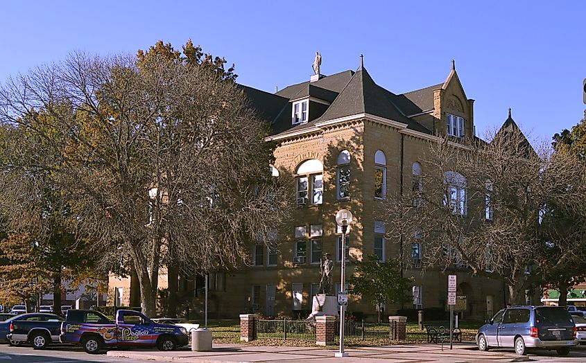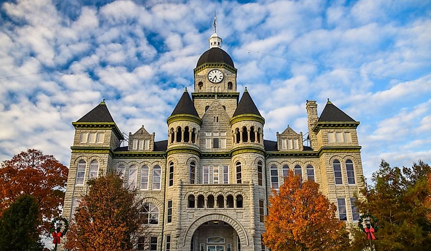 Das Gerichtsgebäude von Carthage mit Herbstlaub in der Innenstadt. Bildnachweis Rachael Martin über Shutterstock.