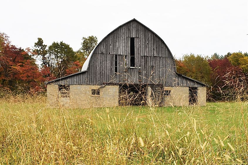 Alte Scheune an einem Herbstmorgen, Libanon, MO.
