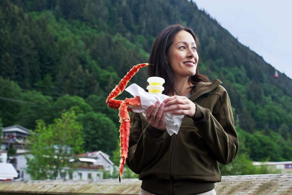 Probieren Sie leckere lokale Spezialitäten wie frisch gefangenen Lachs, Krabbenbiskuit und sogar lokales Wild.
