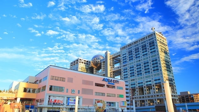 Das Fuji Television-Hauptquartier ist ein Symbol von Odaiba. Hier finden häufig Veranstaltungen und Dreharbeiten statt. Wenn Sie Glück haben, treffen Sie vielleicht sogar eine Berühmtheit.