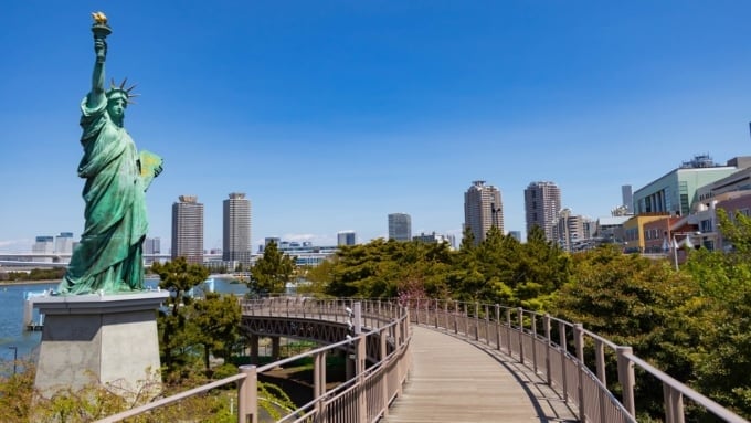 Es gibt auch eine Freiheitsstatue im Park und der Skywalk, der ihn mit dem Tokyo Metropolitan Symbol Promenade Park verbindet, ist ein großartiger Ort zum Fotografieren. Ein Besuch lohnt sich besonders, wenn Sie den nächtlichen Blick auf die Bucht von Tokio genießen möchten.