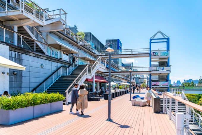 „Decks Tokyo Beach“ ist eine Einkaufs- und Unterhaltungseinrichtung, die Odaiba repräsentiert. Das Gebäude mit Schiffsmotiv verfügt über eine beeindruckende offene Terrasse, die mit Terrassendielen bedeckt ist. Aufgrund seiner Lage an der Bucht von Tokio gibt es zahlreiche Veranstaltungen und saisonale Sonderveranstaltungen, die es zu einem Touristenort machen, den jeder zu jeder Zeit genießen kann.