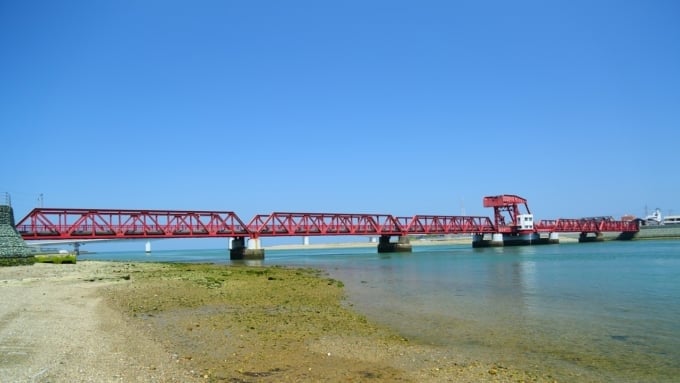 Der Hijikawa River verläuft durch die Präfektur Ozu City. Die Nagahama Ohashi Bridge, die die Mündung des Flusses überspannt, ist die älteste Schwungbrücke, die noch in Japan steht. Diese leuchtend rote Truss -Brücke ist ein nationales wichtiges kulturelles Eigentum, das den Einheimischen als „rote Brücke“ liebevoll bekannt ist!