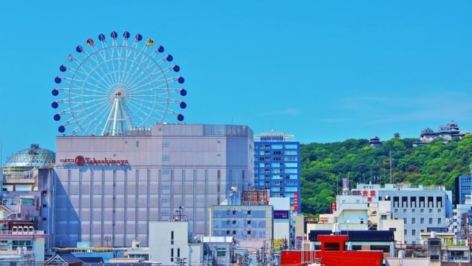 Nur weil es einen Namen wie „Kururin“ hat, heißt das nicht, dass er sich tatsächlich dreht! Wie wäre es mit einer 15-minütigen Reise am Himmel, die langsam herum und rund herumgeht, während er den Panoramablick auf Matsuyama, ehemal, aufnimmt? Wenn Sie mit dem riesigen Riesenrad auf dem Dach von Iyotetsu Takashimaya fahren, können Sie die Aussicht von 85 Metern über dem Boden genießen.