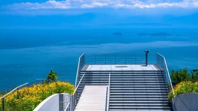 Die Aussicht vom Beobachtungsdeck auf der Bergseite ist spektakulär. Während des Tages können Sie das Seto -Inland -Meer sehen, und nachts verbreitet sich der Nachtblick auf Shikokuchuo City unter sich.