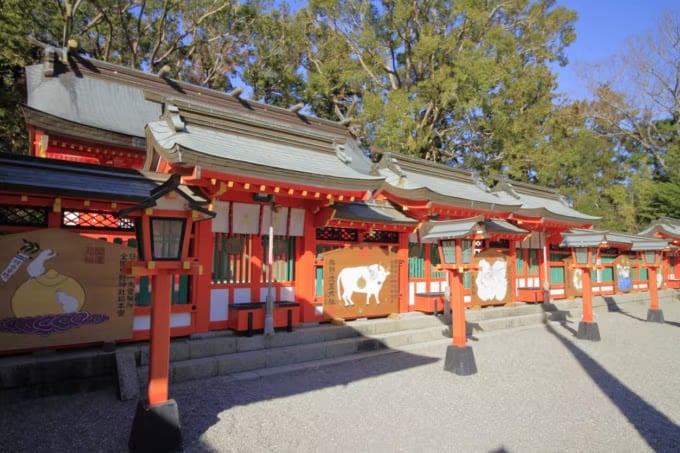 Der Yatagarasu (ein heiliger Vogel der Führung), der auf Amuletten und in den Bezirken zu sehen ist, ist ein „göttlicher Vogel der Führung“, der in den drei Kumano-Schreinen verbreitet ist. Unter dem heiligen Baum vor dem Büro des Schreins steht ein schwarzer Briefkasten mit einem Yatagarasu darauf. Es ist ein denkwürdiger Touristenort, da dort auch Votivtafeln für Yatagarasu-Briefkästen verkauft werden, die als Postkarten verschickt werden können. Da es in der Nähe auch stilvolle Cafés gibt, empfiehlt es sich, zur Mittagszeit einen Spaziergang durch die Gegend zu machen.