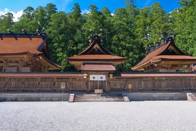 Kumano Hongu Taisha ist einer der drei Kumano-Schreine, die als heiliger Ort der Auferstehung verehrt werden. Es ist ein berühmter Touristenort in Wakayama, wo Susanoo-no-Mikoto als Hauptgottheit verehrt wird. Erklimmen Sie die Steinstufen im Zedernhain, wo die Flagge von „Kumano Daigongen“ steht, und besuchen Sie das heilige Gelände.