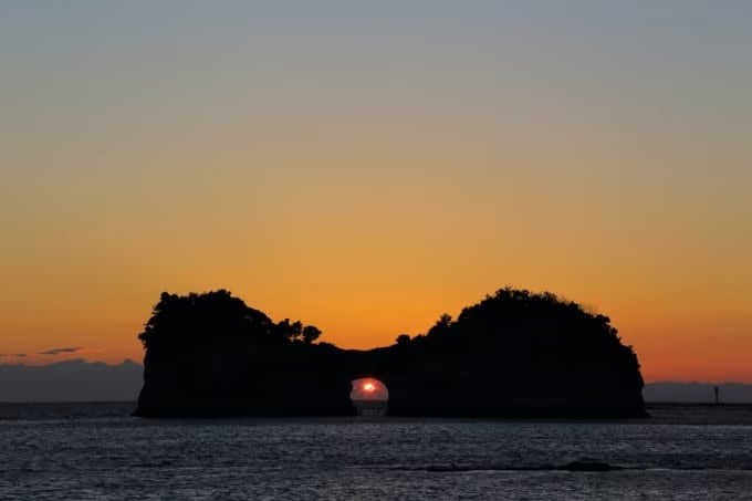 Diese unbewohnte Insel ist 25 m hoch und das Symbol von Shirahama, einem Touristenort in der Präfektur Wakayama. Das runde Loch in der Mitte der Insel ist eine von den Wellen geformte Meereshöhle. Sie wurde „Engetsuto“ (Vollmondinsel) genannt, weil sie wie ein Vollmond aussieht. Ungefähr zur Zeit der Frühlings- und Herbst-Tagundnachtgleiche passt die untergehende Sonne vollständig in das Loch und schafft eine wunderschöne Landschaft.