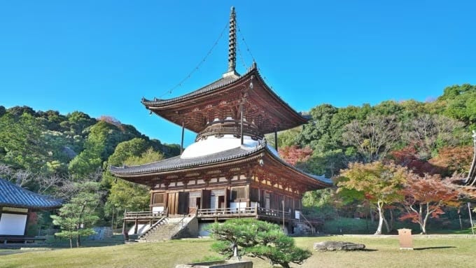Der Negoro-ji-Tempel ist der Haupttempel der Shingon-Sekte des Buddhismus und befindet sich in der Stadt Iwade in der Präfektur Wakayama. Da er von Bergen umgeben ist, ist klar, dass der Tempel selbst einst eine Burg war.