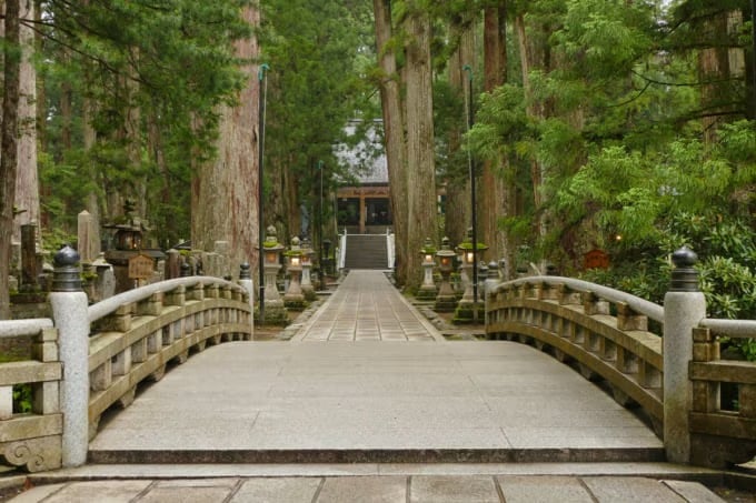 Okunoin ist ein heiliger Ort, der Kukai gewidmet ist, dem Kobo Daishi, der den Berg Koya gründete. Der Zugang zum Tempel ist von Zedernbäumen gesäumt und von einer heiligen Atmosphäre umgeben, so dass man sich beim bloßen Betreten wie in einer anderen Welt fühlt. Es gibt auch einen Friedhof, auf dem berühmte Kriegsherren aus der Zeit der Streitenden Reiche, darunter Oda Nobunaga und Takeda Shingen, gedacht werden.