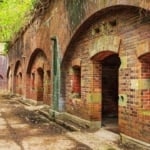 Die Festung Kada Miyama, die von der Meiji-Ära bis zum Zweiten Weltkrieg als Militärfestung genutzt wurde, liegt im Nationalpark Kada Setonaikai in der Präfektur Wakayama.