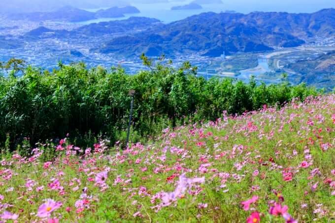 Dieser Berg liegt in Aridagawa-cho, Präfektur Wakayama, und liegt etwa 586 Meter über dem Meeresspiegel. Wie der Name schon sagt, ist der gesamte Berg mit hübschen rosa und weißen Kosmosblumen bedeckt.