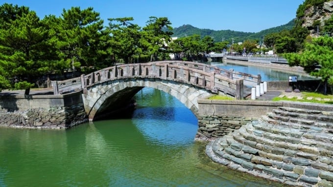Diese wunderschöne Bogenbrücke befindet sich in Wakaura, Stadt Wakayama. Es wurde ursprünglich für den Anlass von Festen erbaut, bei denen die Tokugawa-Familie und mit dem Toshogu-Schrein verbundene Personen zum Toshogu-Schrein reisten, der Tokugawa Ieyasu gewidmet war. Die auffälligen Reliefmuster, die an die Pracht der Edo-Zeit erinnern, geben den Blick auf das ruhige Meer frei.