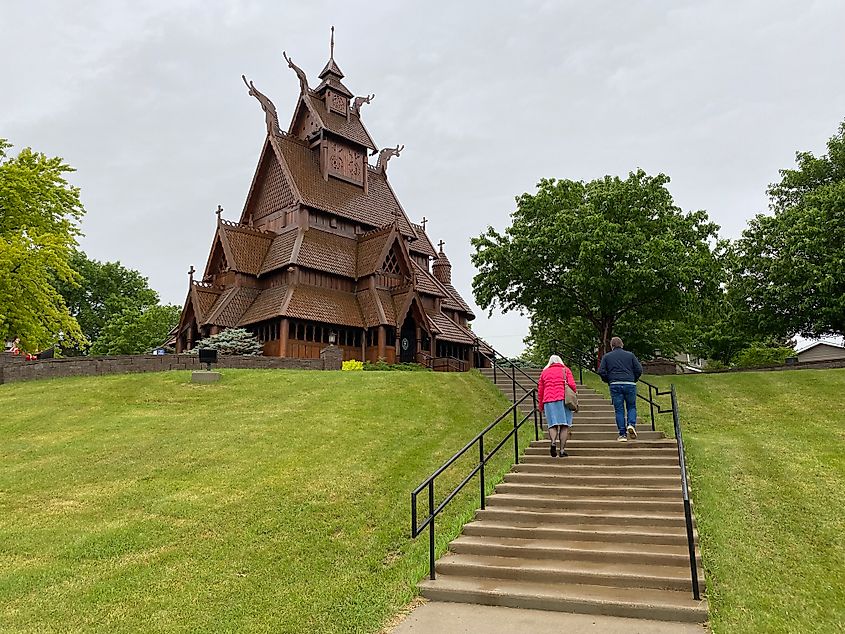 Wenn Sie sich zufällig im Präriestaat North Dakota befinden, probieren Sie diese Zwei-Punkte-Route aus, um die Allgegenwärtigkeit der U.S. Route 2 zu unterstreichen. Minot, auch bekannt als die „Magic City“, hat einiges zu bieten. Es verfügt über eine lebendige Innenstadt, das Dakota Territory Air Museum, den Roosevelt Park Zoo, das auf Edutainment ausgerichtete Magic City Discovery Center und ist Austragungsort der einwöchigen North Dakota State Fair (d. h. der größten jährlichen Veranstaltung des Staates). Aber sein einzigartigstes Kapital ist sicherlich das Scandinavian Heritage Centre im Herzen der Stadt. Von Mai bis Ende September können Besucher durch die ikonische Architektur Norwegens, Schwedens, Dänemarks, Finnlands und Islands spazieren. Die gewaltige norwegische Gol-Stabkirche ist der klare Mittelpunkt, aber auch das angrenzende, 30 Fuß hohe, leuchtend rote schwedische Dala-Pferd ist kein Problem.