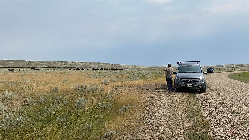 Eine Bisonherde nähert sich dem Ecotour Scenic Drive. Foto: Andrew Douglas