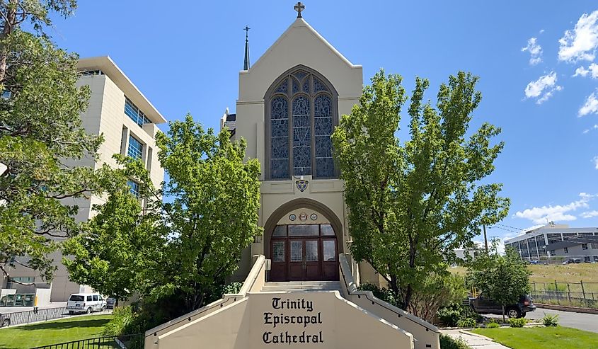 In Reno ist die Trinity Episcopal Cathedral ein bemerkenswertes Beispiel historischer Kirchenarchitektur und spiegelt mehr als ein Jahrhundert Pfarrgeschichte wider. Die Gemeinde wurde 1870 gegründet und traf sich zunächst in einem Schulhaus, bevor sie bald darauf ihre erste Kirche baute. Zu Beginn der 1920er-Jahre waren Pläne für ein neues Gebäude im Gange, und obwohl sich der Bau verzögerte, wurde die untere Ebene 1929 eröffnet und diente der Gemeinde zwei Jahrzehnte lang. Die fertiggestellte Kathedrale am Südufer des Truckee River wurde 1949 fertiggestellt.